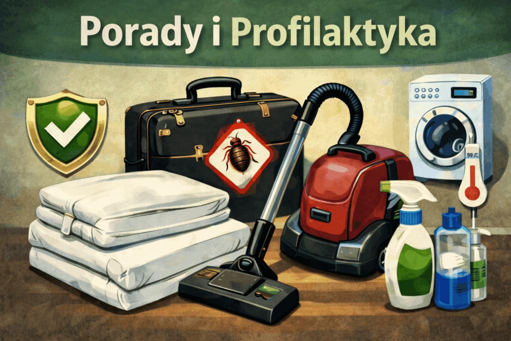 • Dokładne sprzątanie – odkurz podłogi, zwłaszcza przy listwach przypodłogowych, pod łóżkami, kanapami i w zagłówkach. Po odkurzaniu worek/pojemnik opróżnij do szczelnego worka foliowego i wyrzuć. Umyj podłogi na mokro, ale nie tuż przed zabiegiem.